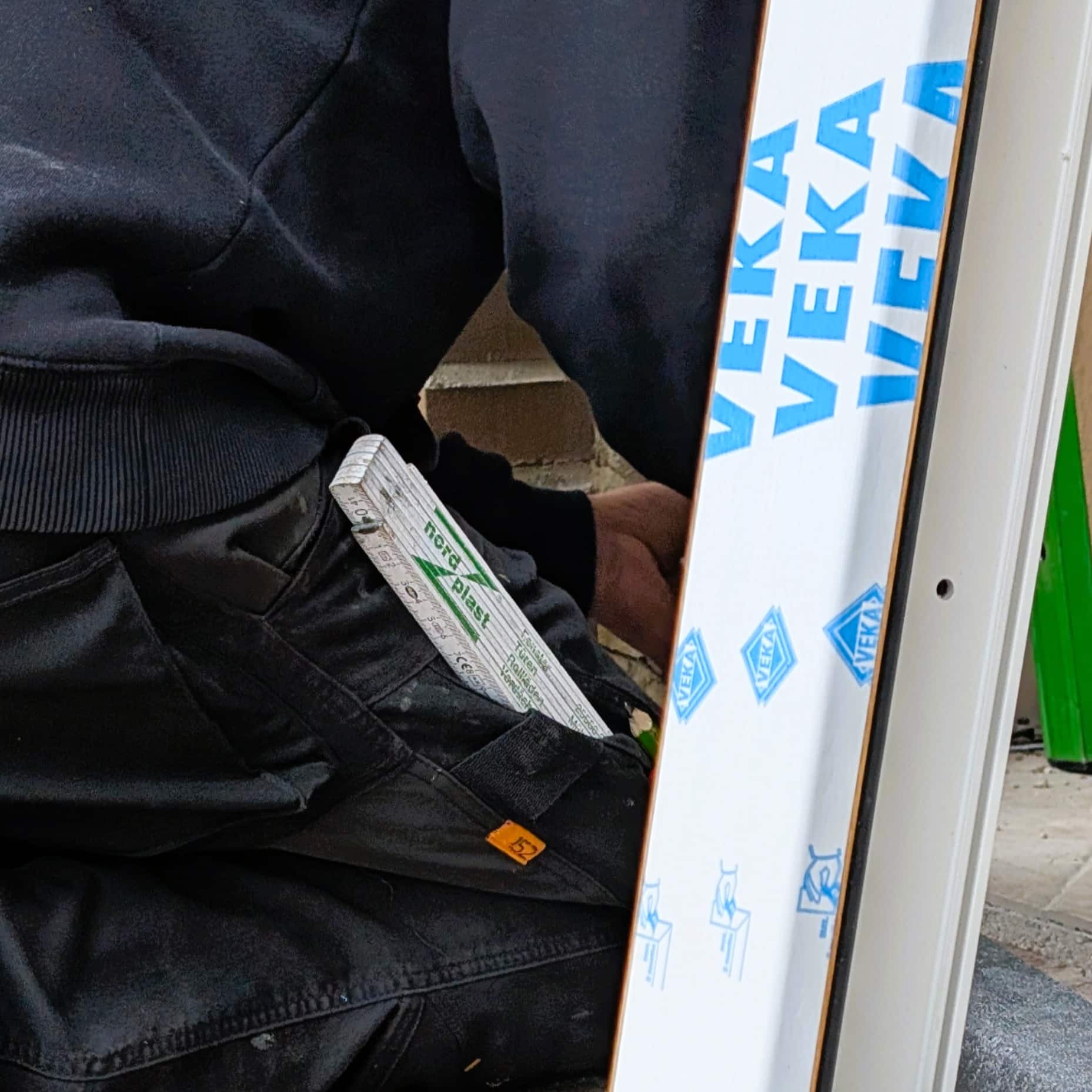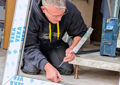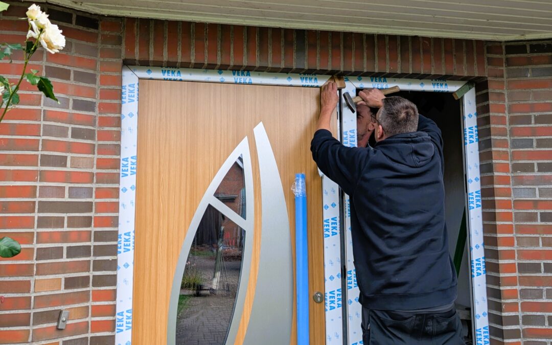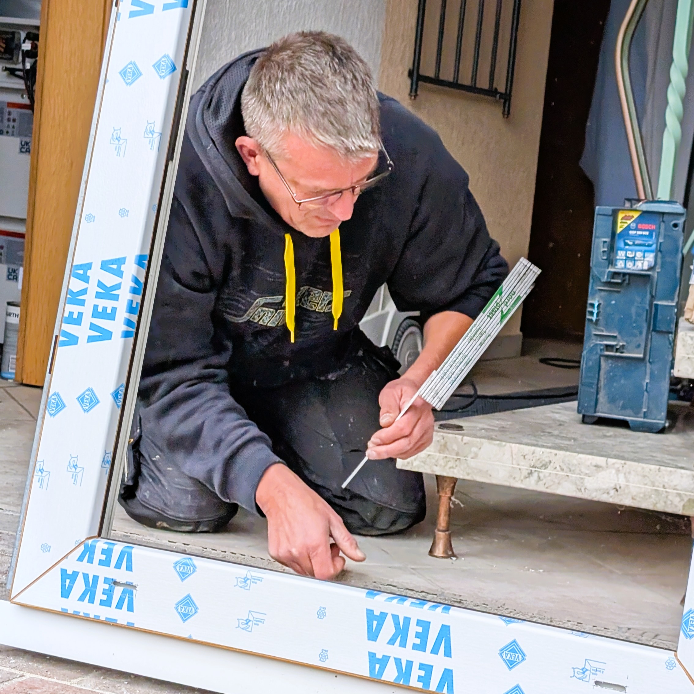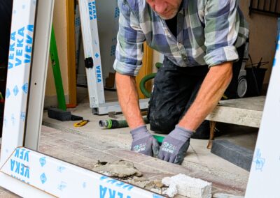 Der Einbau ist einer der wichtigsten Schritte. Unsere Montageteams arbeiten hier mit absoluter Präzision und großer Erfahrung, denn beim Einbau zählt jedes Detail. Der neue Türrahmen wird exakt ausgerichtet, verschraubt und fachgerecht abgedichtet, um optimale Wärmedämmung und Dichtigkeit zu gewährleisten. Anschließend wird der Türflügel montiert, die Beschläge eingestellt und die Schließfunktion überprüft.
